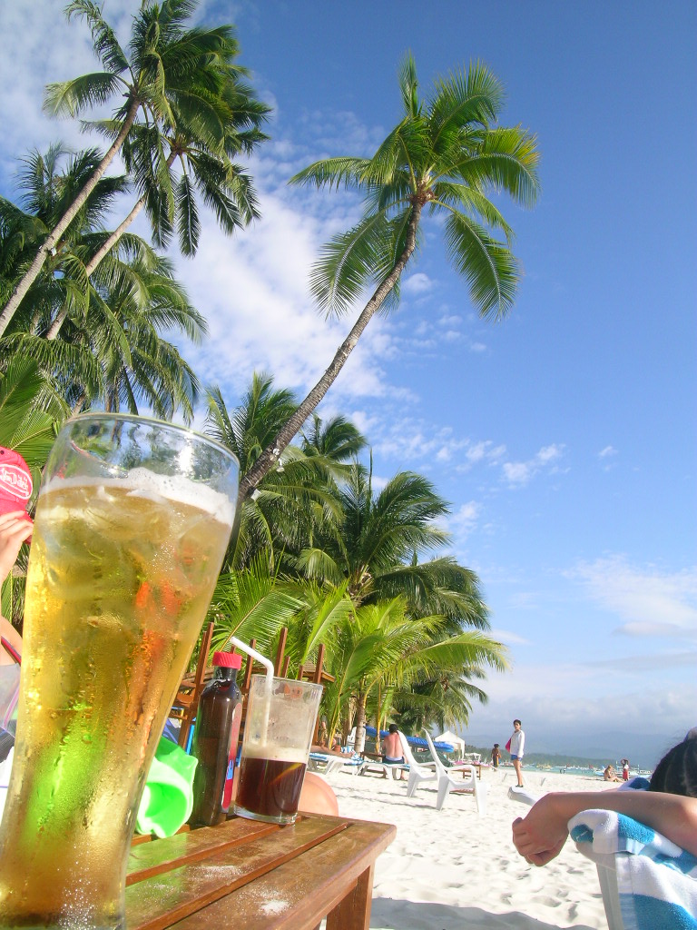 오~시원한 맥주에 하얀 모래밭에 야자나무까지...